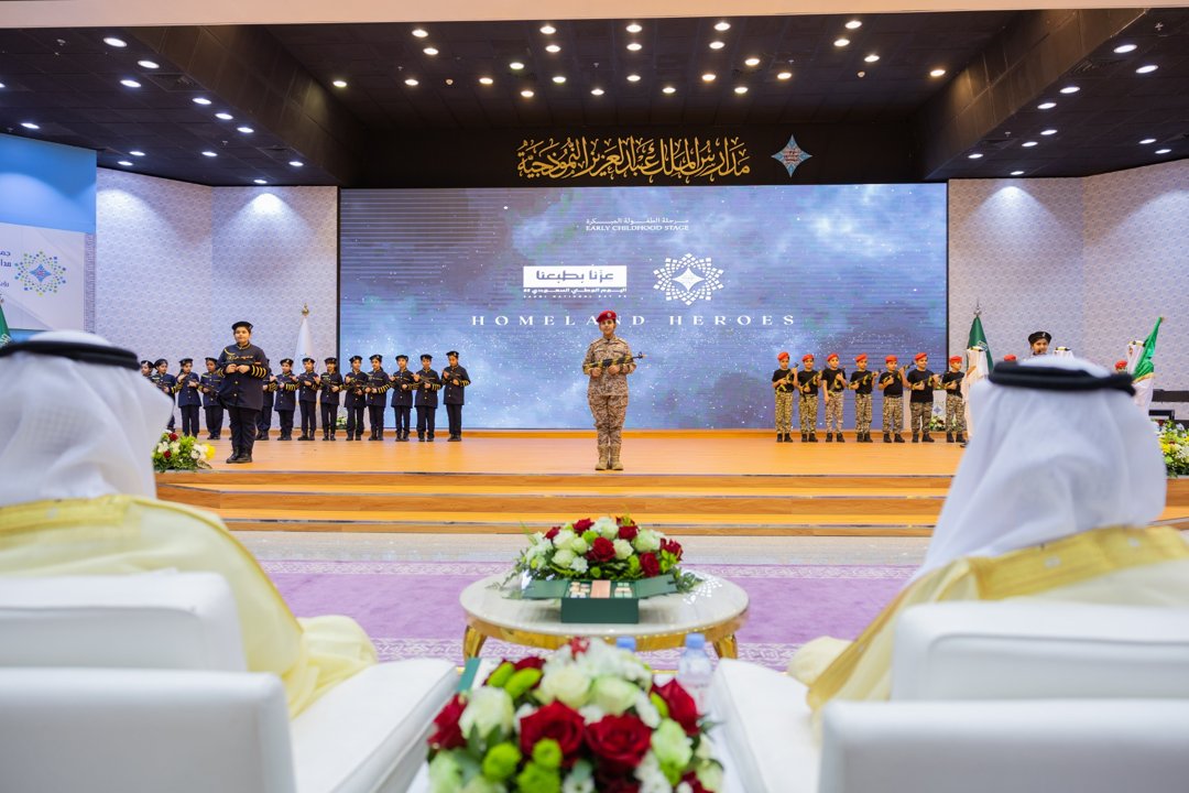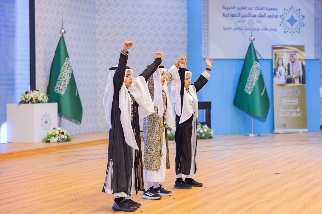 كما تضمن الحفل عروضًا فنية قدمها طلاب وطالبات المدارس شملت أوبريت بعنوان "سعوديون"، وآخر بعنوان "عزنا بطبعنا"، إلى جانب عرض مرئي بعنوان "من حلم الصحراء إلى وطن المجد"، وقصيدة "ملامح التطور في وطن العز".