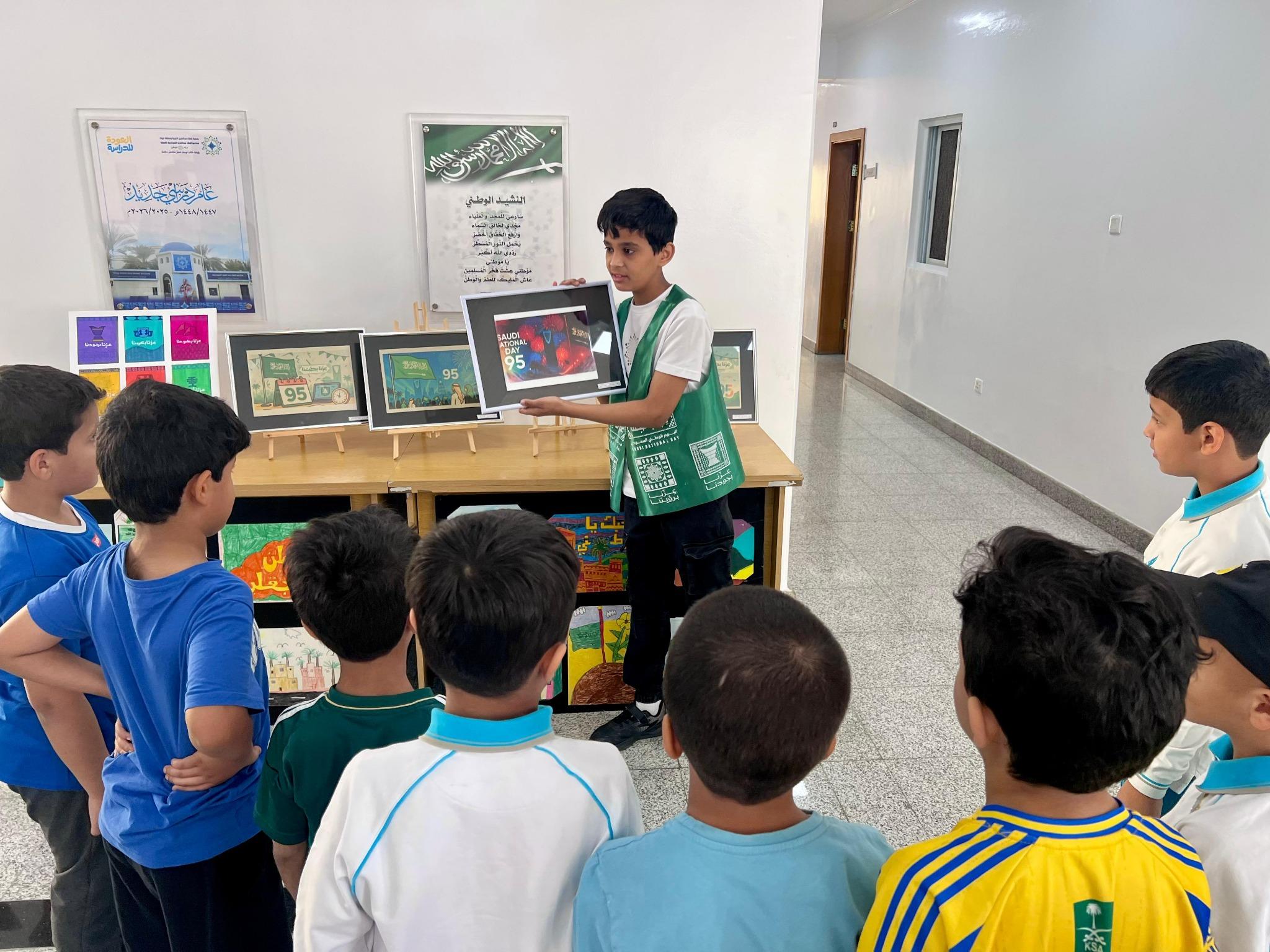 ضمن فعاليات الاحتفاء باليوم الوطني، أقامت المرحلة الابتدائية معرضًا فنيًا مميزًا شارك فيه طلابنا الصغار بلوحات ومجسمات من صنع أيديهم، جسّدوا من خلالها معالم المملكة بعين البراءة والطموح.