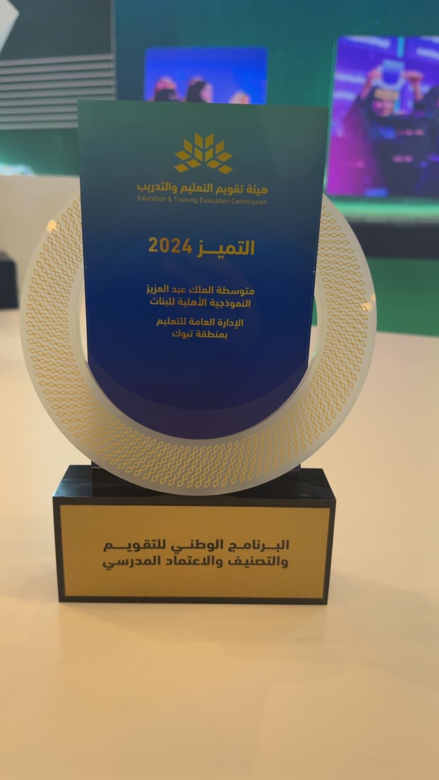 في إنجازٍ نوعي يُضاف إلى سجلّ مدارس الملك عبدالعزيز النموذجية بتبوك، حصدت المرحلة المتوسطة بنات درع التميّز المدرسي ، والمقدَّم من هيئة تقويم التعليم والتدريب، وذلك خلال الملتقى الوطني للتميّز المدرسي 2025 م الذي أُقيم يوم الإثنين 13 أكتوبر 2025م بمدينة الرياض.