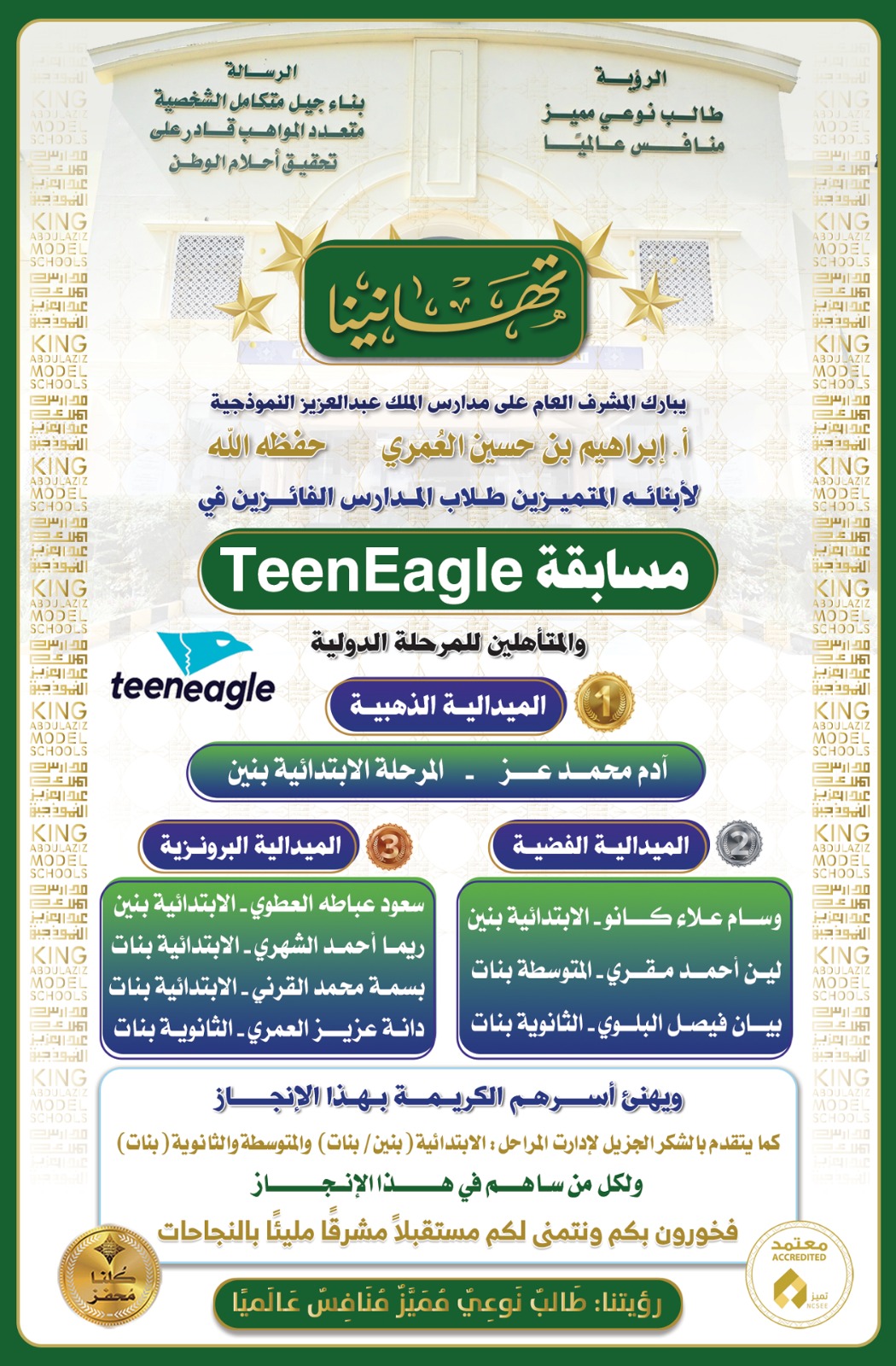 طلابنا يحققون الفوز والتميّز في مسابقة Teen Eagle